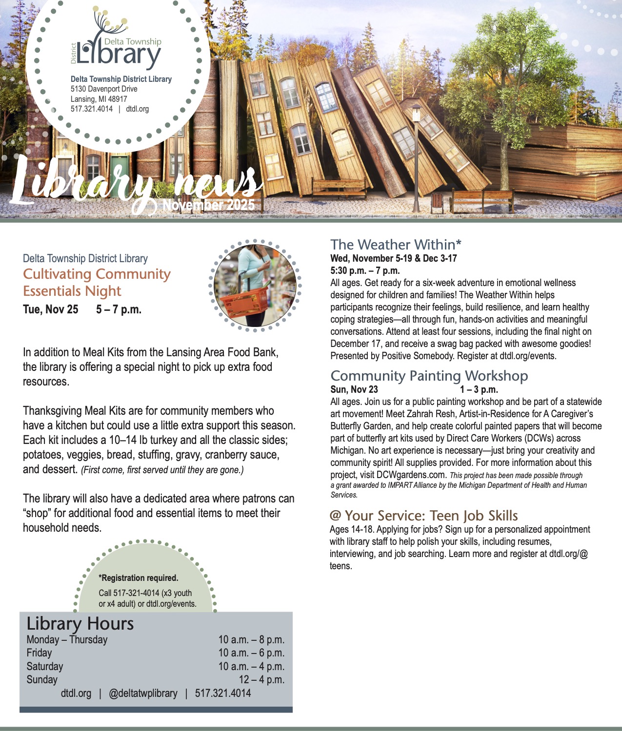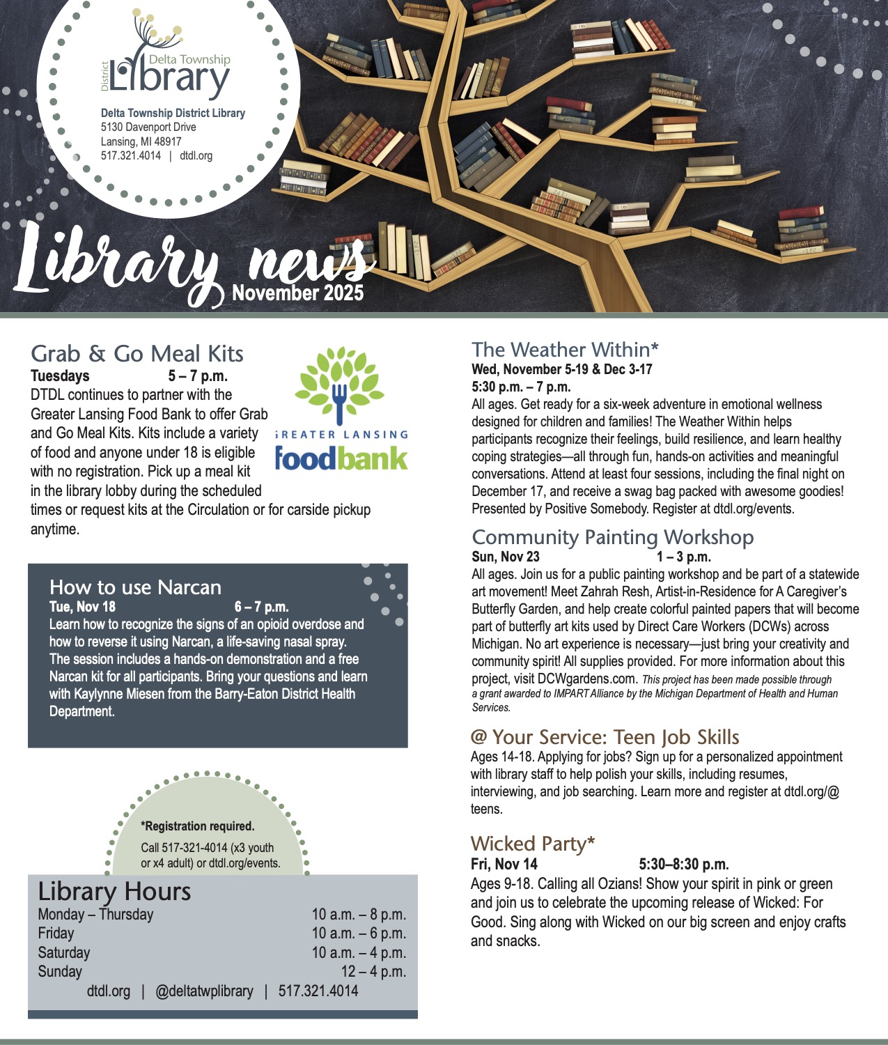 Visit the "Events in Delta" webpage on the Delta Township website or visit its Facebook page.