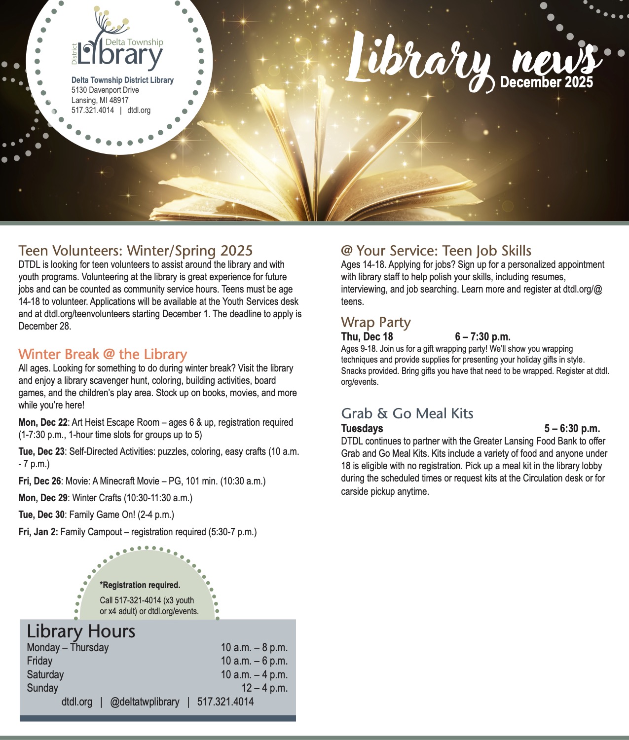 - Delta Township District Library website and its Facebook page