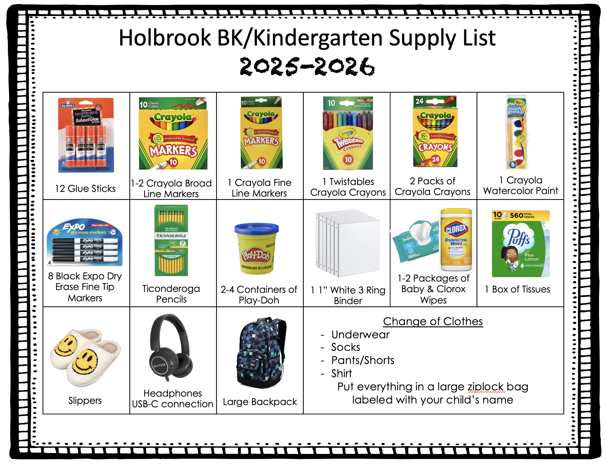 Holbrook Elementary BK/K Grade Supply List 2025-2026 - Buying school supplies is optional. The school will provide students with the required learning materials.