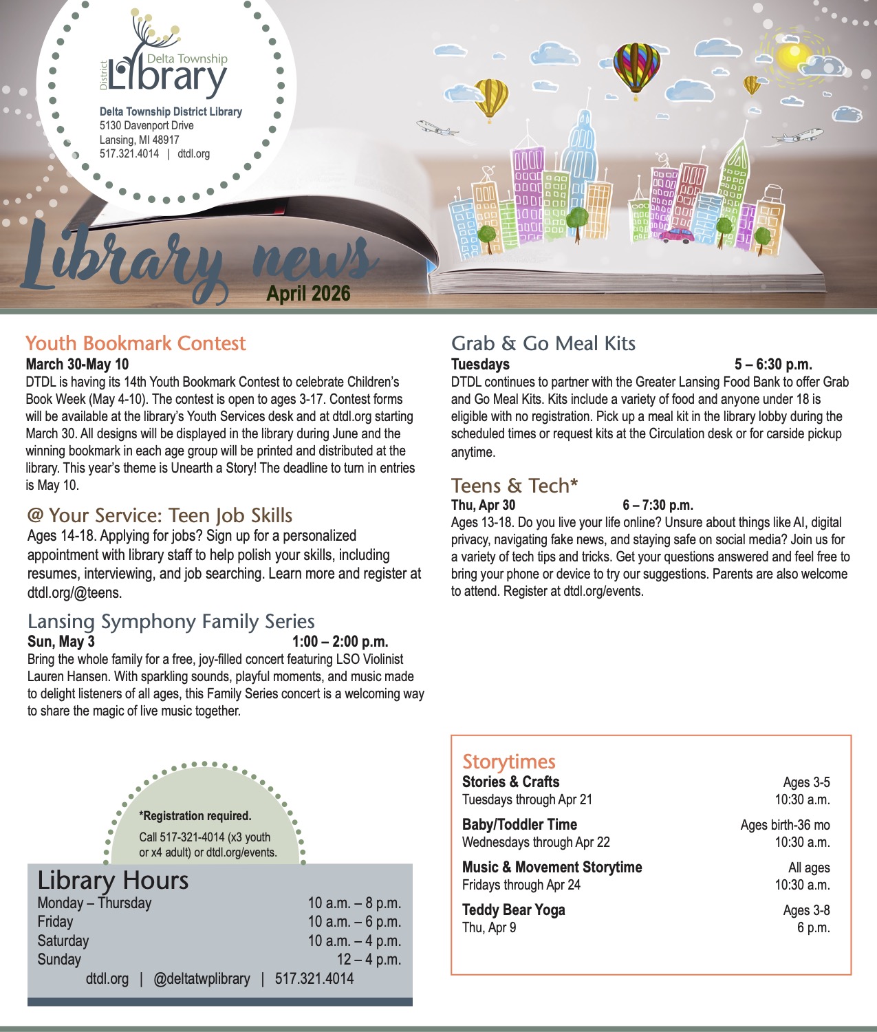 Visit the "Events in Delta" webpage on the Delta Township website or visit its Facebook page.